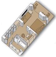 ![]() | Pinnacle Suite PS 126 m² vrátane verandy Veranda s teakovou podlahou 3. lôžko; veľká obývacia časť; 2 umývadlá, vírivá vaňa a extra sprcha; vlastný stereo systém; mikrovlnka a mraznička; veranda s vírivou vaňou. | ![]() |