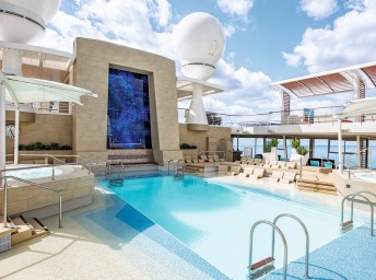 Kajuty: priestranné, od 17 m2. Podiel balkónových kajút je orientačne 82% z celej flotily.