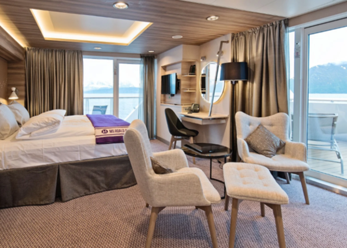 | MD - Expedition Large Suite s balkónom ♿ 35 m². Balkón. TV, minibar, varná kanvica, kávovar. Bezbariérová kajuta♿ 7. paluba vpredu. Max 4 osoby. Výhody Suite. | 21 520 € 10 760 € za osobu | ||