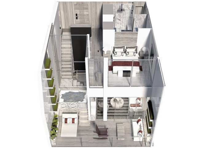 Penthouse Suite sú vybavené spálňou, šatníkom, kúpeľňou, obývacou časťou a terasou s vírivkou a hostia majú k dispozícii osobného majordóma.