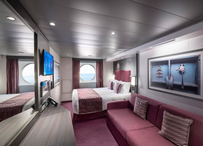 Vo všetkých kajutách sa nachádza regulovateľná klimatizácia, safe, kúpeľňa so sprchou, sušič na vlasy, telefón, interaktívna Tv s plochou obrazovkou, minibar. Oddelené postele sa na požiadanie dajú spojiť do manželskej.