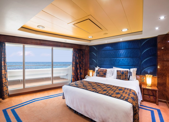 Suite s balkónom/panoramatickým oknom: 21-47m², (Royal 53m², Family 52m²)kajuta s manželskou posteľou (na požiadanie 2 oddelené postele) a rozkladacia pohovka. Klimatizácia, kúpeľňa s vaňou, toaletný stolík, priestorná skriňa, interaktívna TV, telefón, minibar, sejf, sušič na vlasy. Balkón so stolíkom a stoličkami/panoramatické okno. Internetové pripojenie (za poplatok).